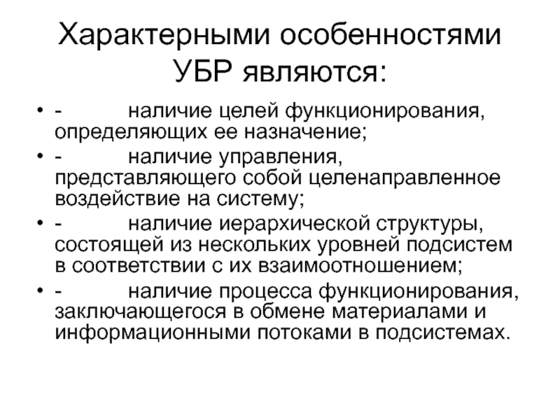 наличие управления, представляющего собой целенаправленное воздействие на систему;
