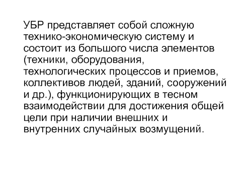 Слайд 14 УБР представляет собой сложную технико-экономическую систему и состоит из