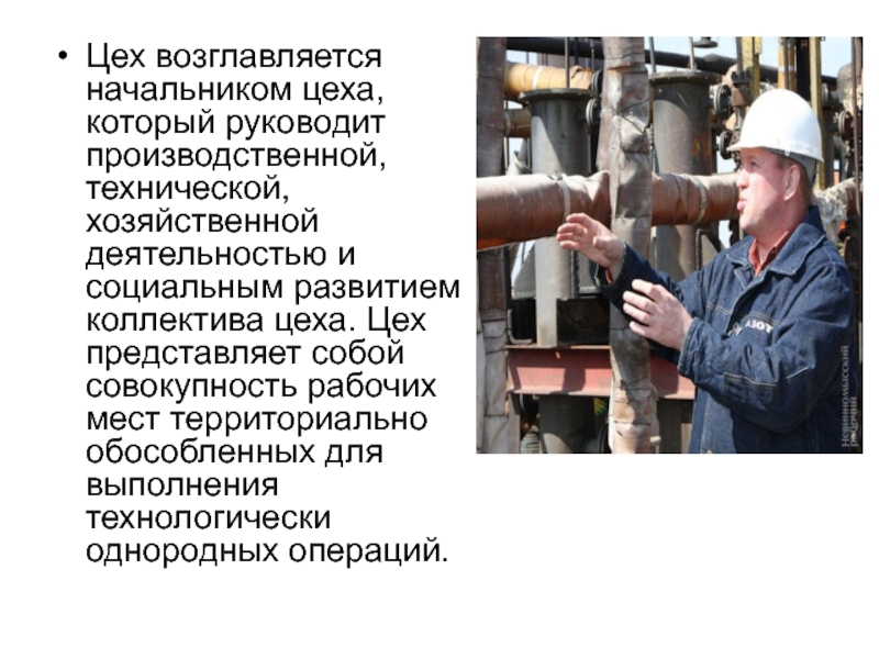 Слайд 23Цех возглавляется начальником цеха, который руководит производственной, технической, хозяйственной деятельностью и