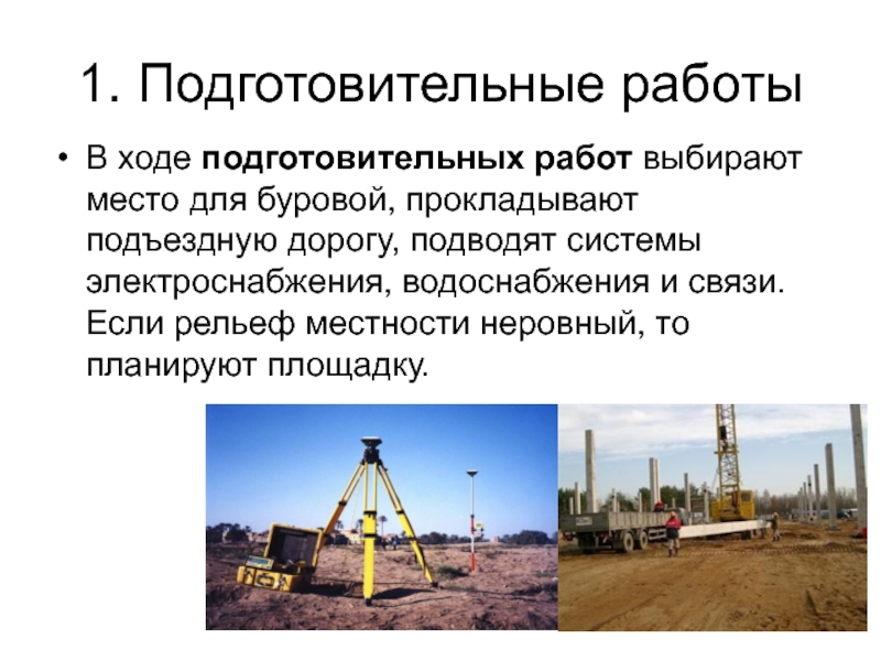 В ходе подготовительных работ выбирают место для буровой, прокладывают