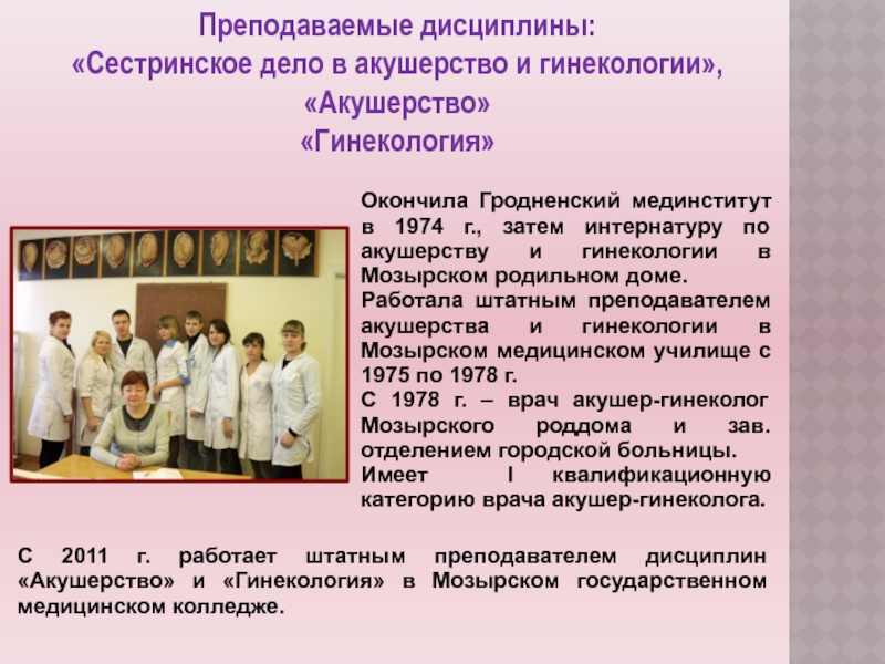 1974 г., затем интернатуру по акушерству и гинекологии в Мозырском родильном доме.