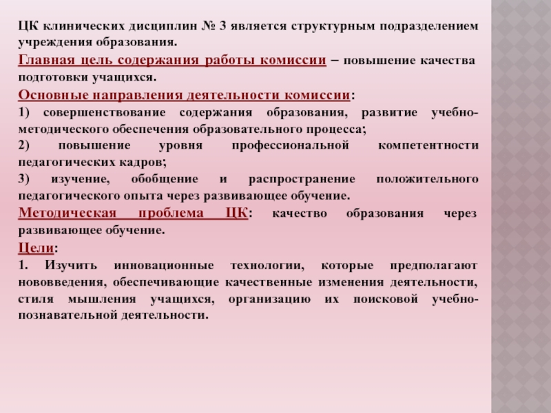 Слайд 3ЦК клинических дисциплин № 3 является структурным подразделением учреждения образования.