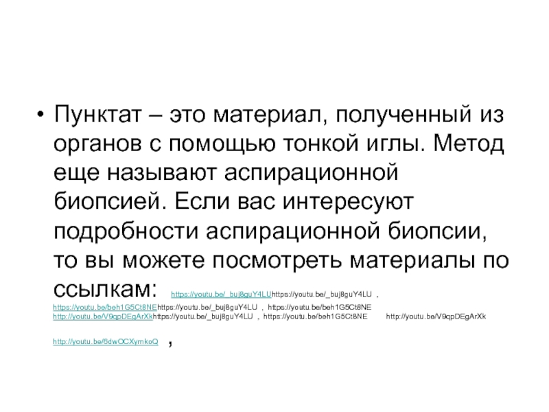 Метод еще называют аспирационной биопсией. Если вас интересуют подробности аспирационной биопсии, то вы можете посмотреть материалы по ссылкам: https://youtu.be/_buj8guY4LUhttps://youtu.be/_buj8guY4LU , https://youtu.be/beh1G5Ct8NEhttps://youtu.be/_buj8guY4LU , https://youtu.be/beh1G5Ct8NE http://youtu.be/V9qpDEgArXkhttps://youtu.be/_buj8guY4LU , https://youtu.be/beh1G5Ct8NE http://youtu.be/V9qpDEgArXk http://youtu.be/6dwOCXymkoQ ,