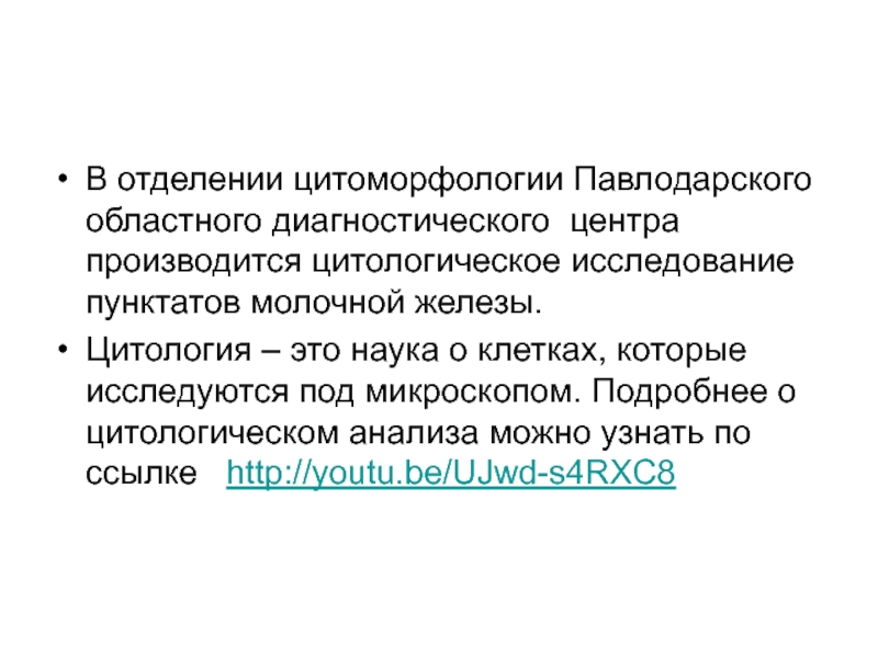 Цитология – это наука о клетках, которые исследуются под микроскопом. Подробнее о цитологическом анализа можно узнать по ссылке http://youtu.be/UJwd-s4RXC8
