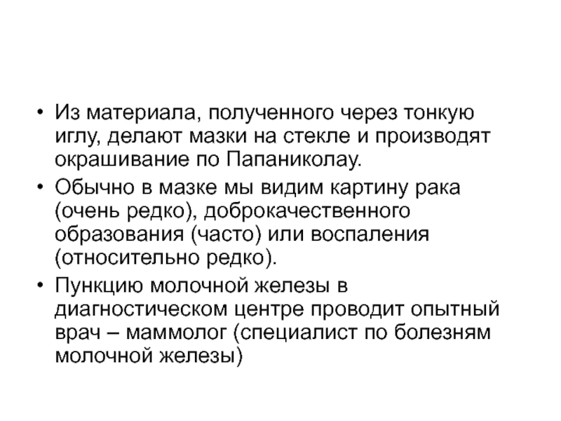 Из материала, полученного через тонкую иглу, делают мазки на стекле и