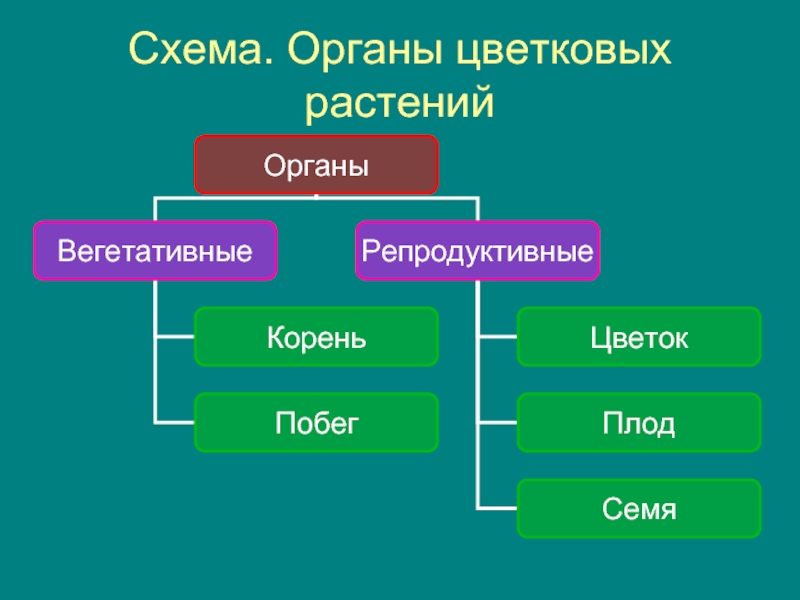 Слайд 9Схема. Органы цветковых растений