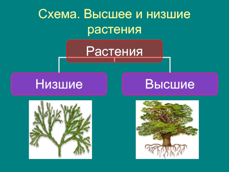 Слайд 6Схема. Высшее и низшие растения