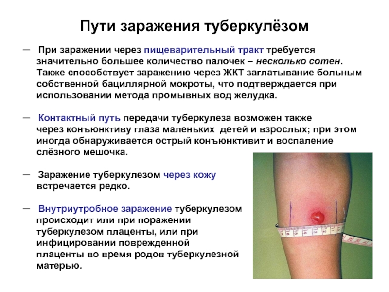 ٭ Различают несколько возможных путей передачи микобактерий туберкулеза: