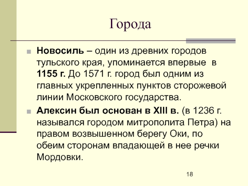 В середине XVI в. была основана Епифань. В 1571 г. она уже существовала как город, то есть как укрепленное место.
