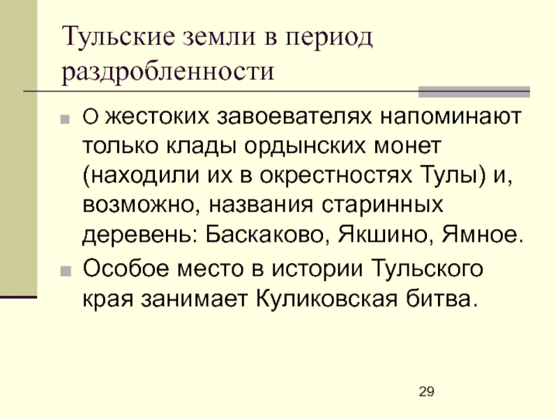 монет (находили их в окрестностях Тулы) и, возможно, названия старинных деревень: Баскаково, Якшино, Ямное.