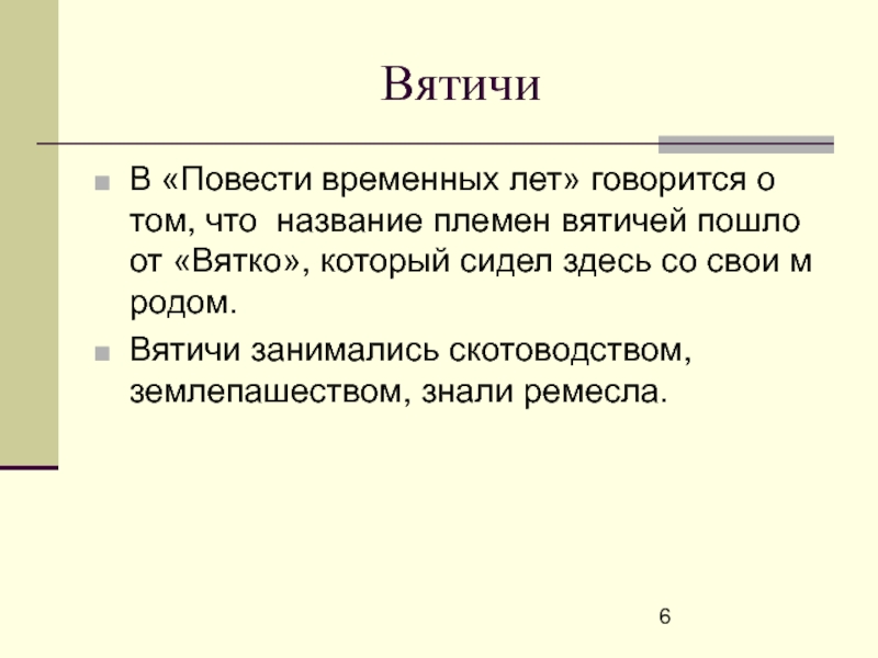 вятичей пошло от «Вятко», который сидел здесь со свои м родом.
