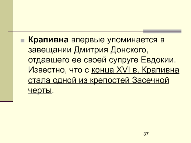 Евдокии. Известно, что с конца XVI в. Крапивна стала одной из крепостей Засечной черты.