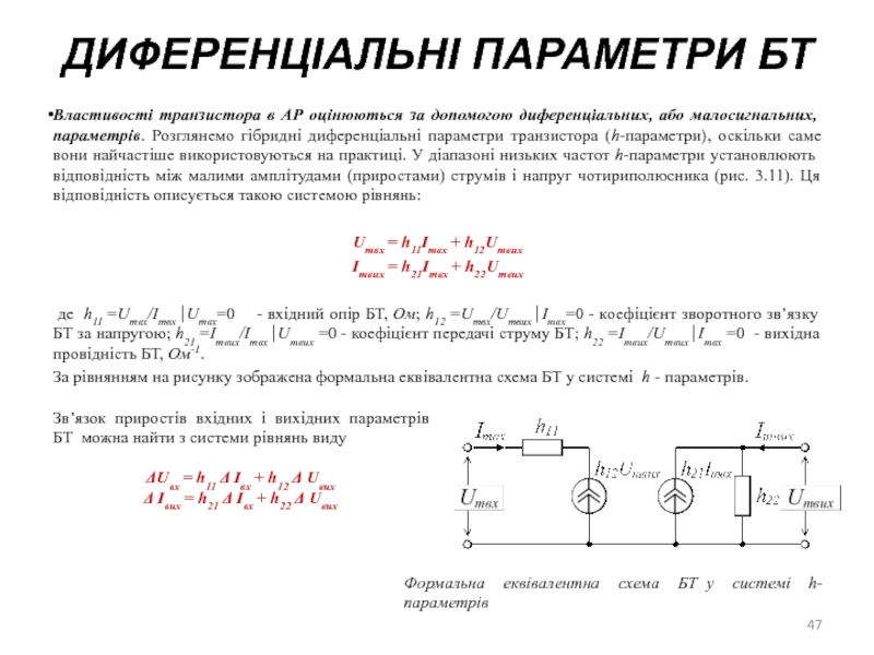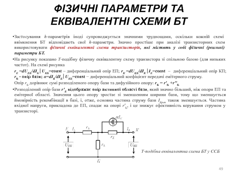 Слайд 51ФІЗИЧНІ ПАРАМЕТРИ ТА ЕКВІВАЛЕНТНІ СХЕМИ БТ