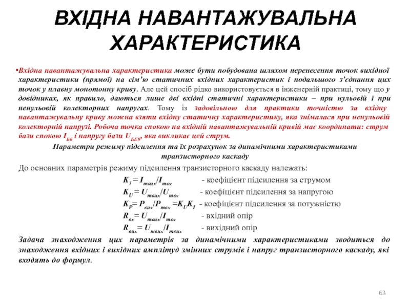 Слайд 63ВХІДНА НАВАНТАЖУВАЛЬНА ХАРАКТЕРИСТИКА