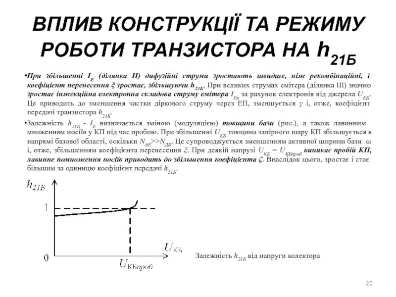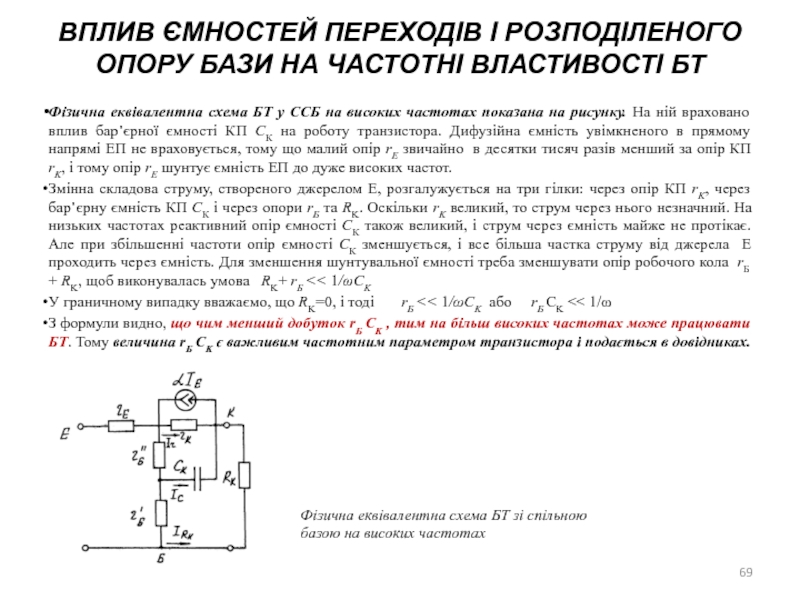 Слайд 69ВПЛИВ ЄМНОСТЕЙ ПЕРЕХОДІВ І РОЗПОДІЛЕНОГО ОПОРУ БАЗИ НА ЧАСТОТНІ ВЛАСТИВОСТІ БТ