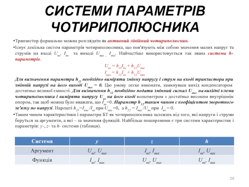 Задача знаходження цих параметрів за динамічними характеристиками зводиться до знаходження вхідних і вихідних амплітуд змінних струмів і напруг транзисторного каскаду, які входять до формул.