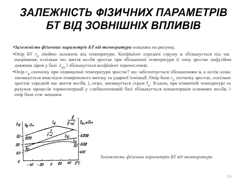 Слайд 53ЗАЛЕЖНІСТЬ ФІЗИЧНИХ ПАРАМЕТРІВ БТ ВІД ЗОВНІШНІХ ВПЛИВІВ