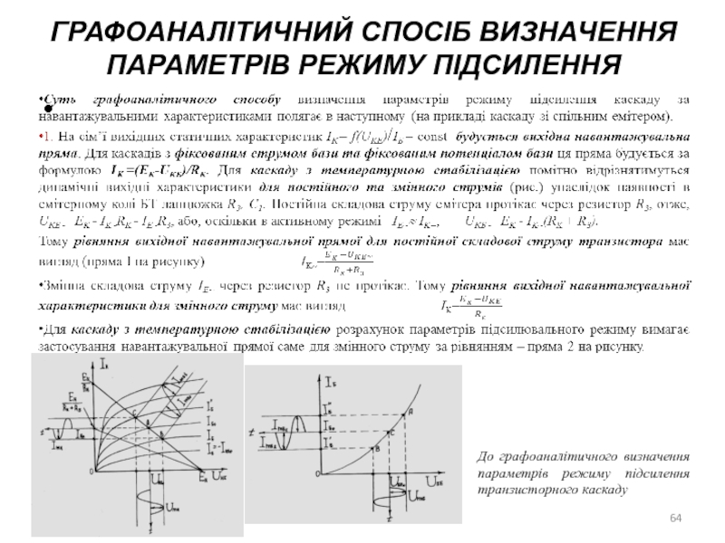 Слайд 64ГРАФОАНАЛІТИЧНИЙ СПОСІБ ВИЗНАЧЕННЯ ПАРАМЕТРІВ РЕЖИМУ ПІДСИЛЕННЯ