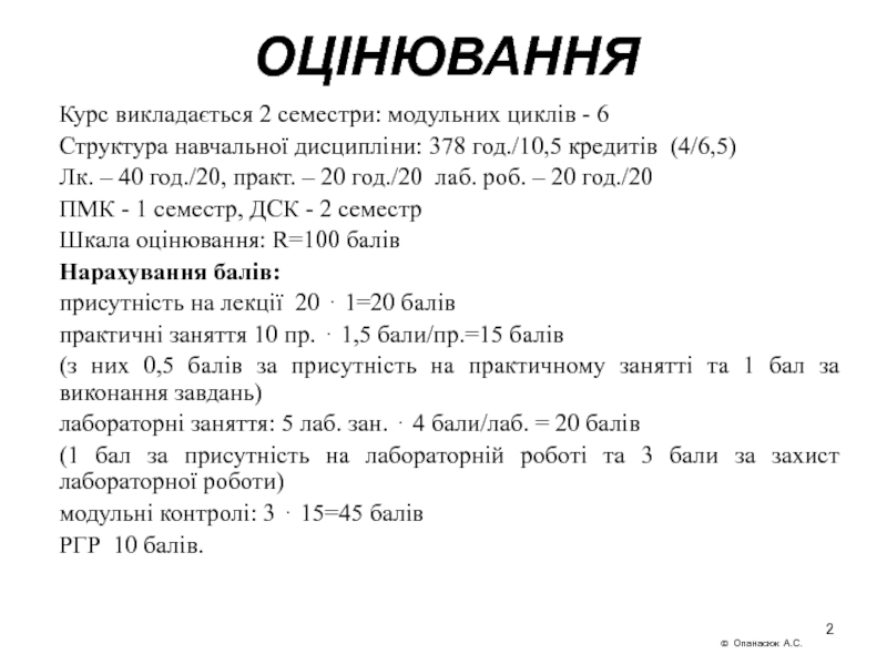 лабораторні заняття: 5 лаб. зан. ⋅ 4 бали/лаб. = 20 балів