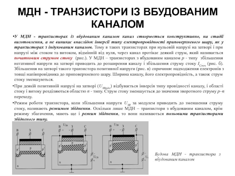 Слайд 17МДН - ТРАНЗИСТОРИ ІЗ ВБУДОВАНИМ КАНАЛОМ