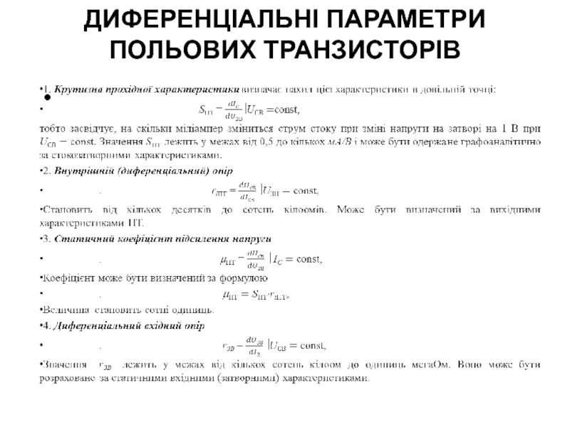 Слайд 13ДИФЕРЕНЦІАЛЬНІ ПАРАМЕТРИ ПОЛЬОВИХ ТРАНЗИСТОРІВ