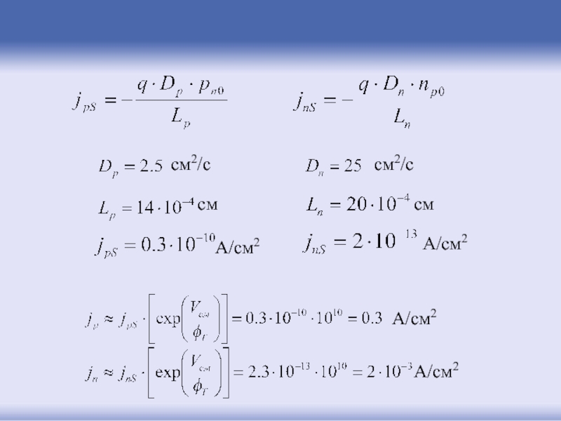 образом, плотность тока в n-области определяется диффузионным током дырок, зависящим от их градиента концентрации: