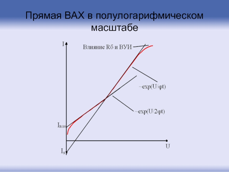 Слайд 46Прямая ВАХ в полулогарифмическом масштабе