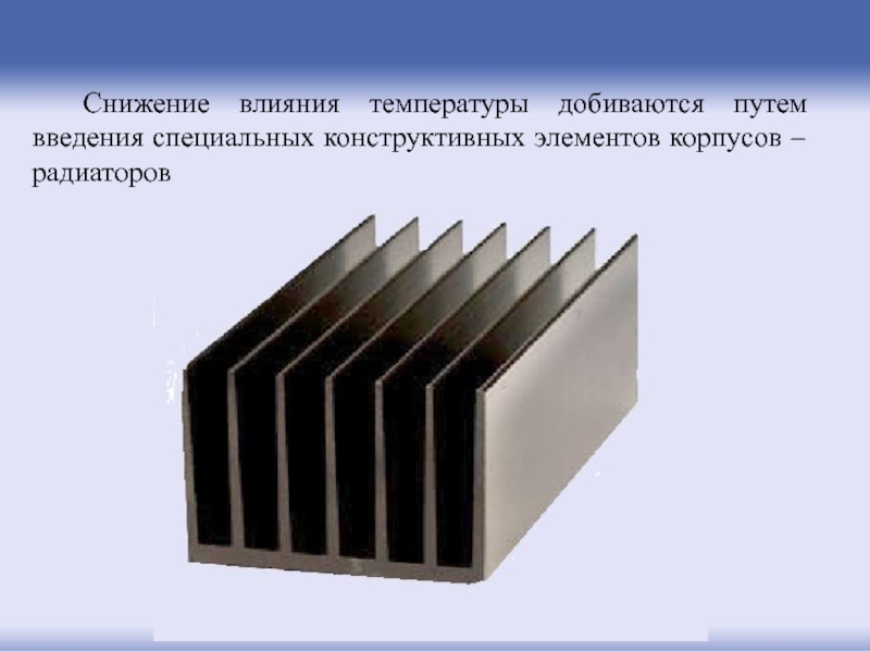 Слайд 64Снижение влияния температуры добиваются путем введения специальных конструктивных элементов корпусов –