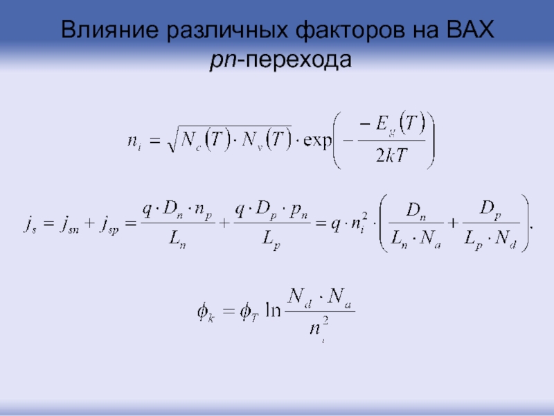 Слайд 10ВАХ тонкого pn-перехода описывается уравнением: