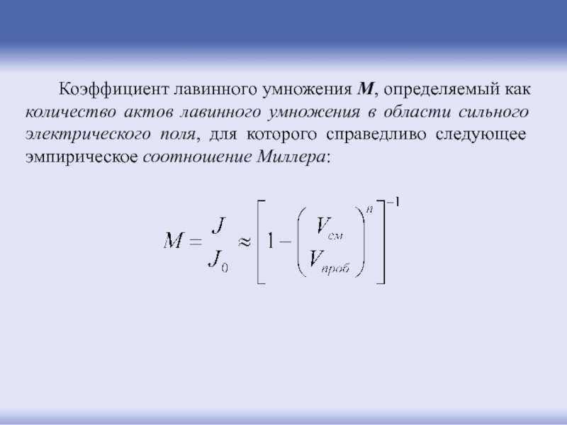 Коэффициент лавинного умножения M, определяемый как количество актов лавинного умножения в