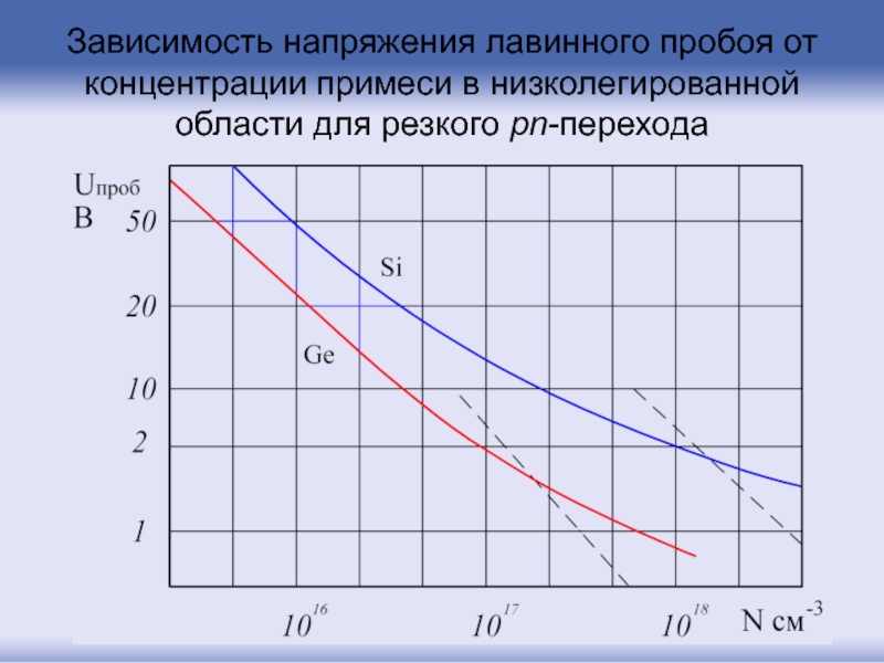 Слайд 37Напряжение лавинного пробоя зависит от степени легирования p- и n-областей. Так,