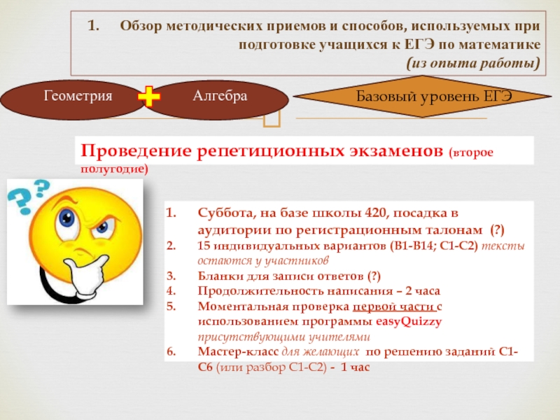 Организация системного повторения курса геометрии (классификация заданий В6, В3, В9, В11 + С2 по книге Смирнова В.А.)