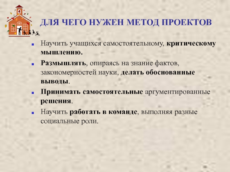 Слайд 4ДЛЯ ЧЕГО НУЖЕН МЕТОД ПРОЕКТОВ