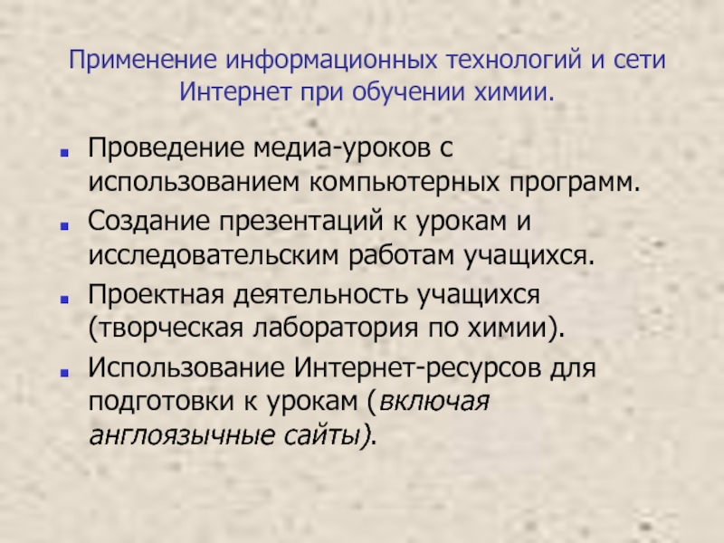 Слайд 8Применение информационных технологий и сети Интернет при обучении химии.