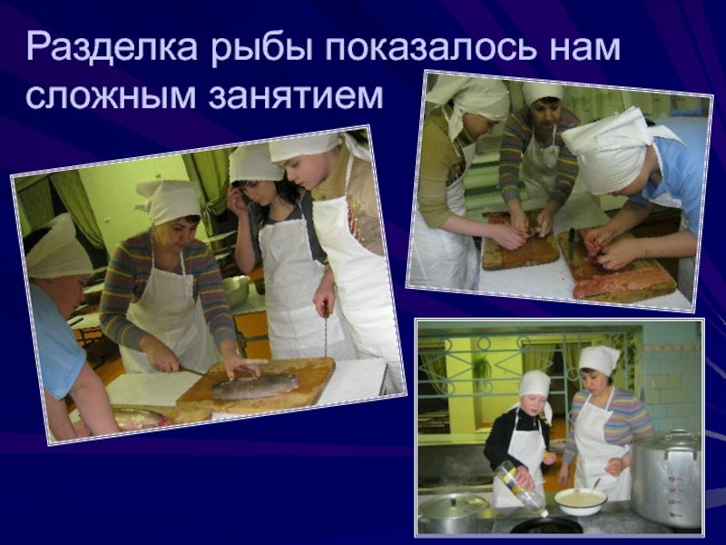 Слайд 25Разделка рыбы показалось нам сложным занятием