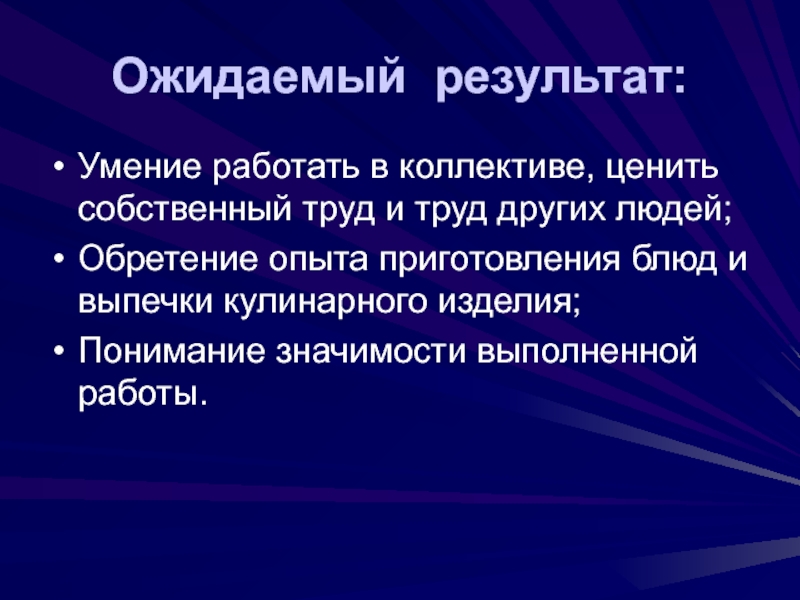 Обретение опыта приготовления блюд и выпечки кулинарного изделия;