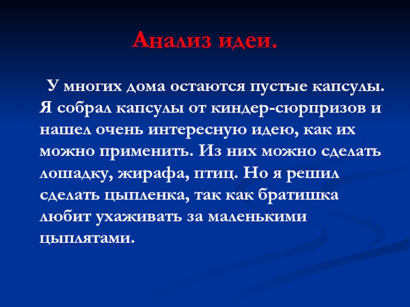 Я собрал капсулы от киндер-сюрпризов и нашел очень интересную идею, как их можно применить. Из них можно сделать лошадку, жирафа, птиц. Но я решил сделать цыпленка, так как братишка любит ухаживать за маленькими цыплятами.