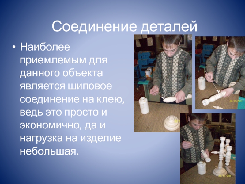 Наиболее приемлемым для данного объекта является шиповое соединение на клею,