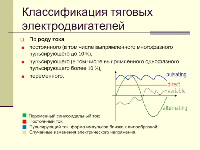 Слайд 9Классификация тяговых электродвигателей