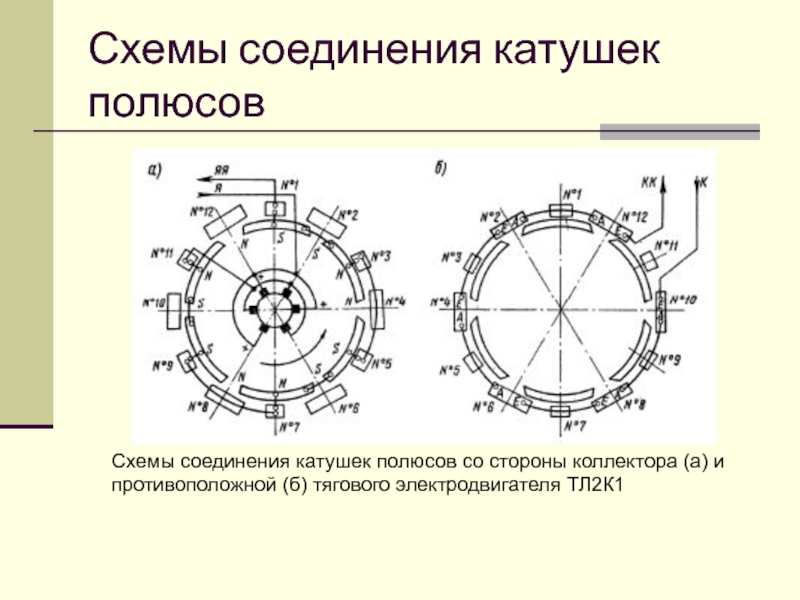 Слайд 35Схемы соединения катушек полюсов