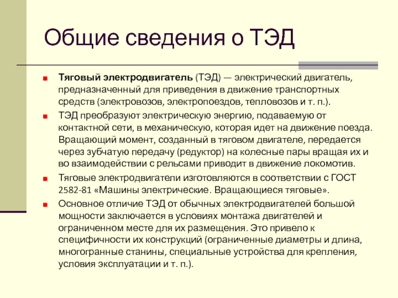 Слайд 4Общие сведения о ТЭД