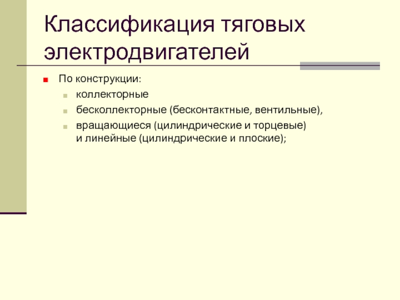 Слайд 19Классификация тяговых электродвигателей
