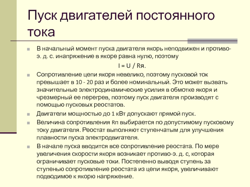 Слайд 61Пуск двигателей постоянного тока