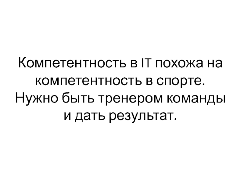 Слайд 5Компетентность в IT похожа на компетентность в спорте. Нужно быть тренером