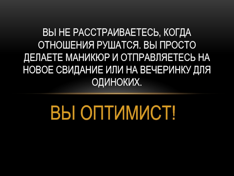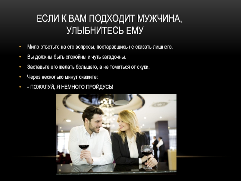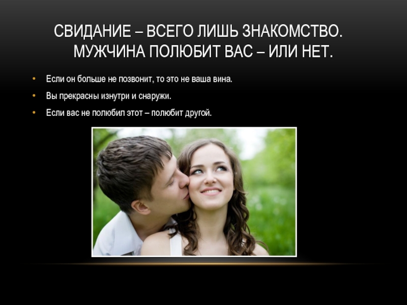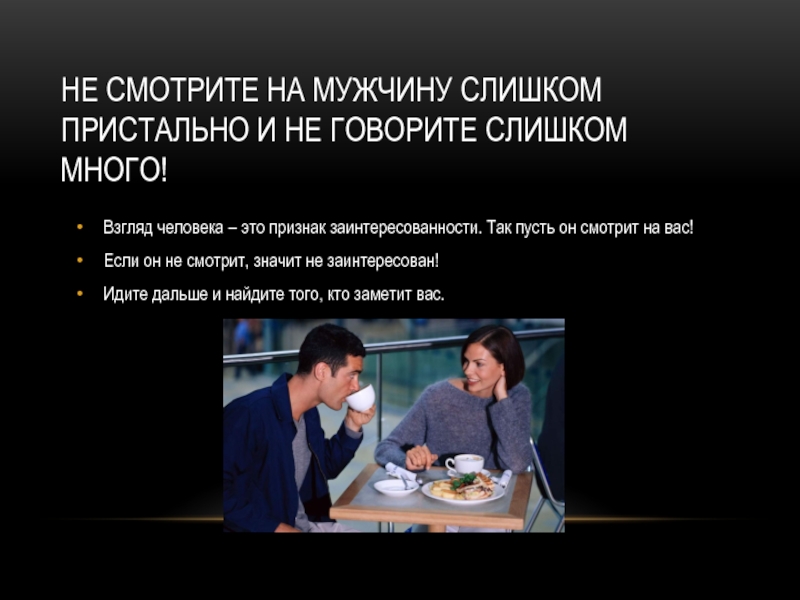Слайд 64НА ПЕРВОМ СВИДАНИИ ИЗБЕГАЙТЕ РОМАНТИЧЕСКИХ ВЗГЛЯДОВ НА МУЖЧИНУ, ИНАЧЕ ОН ПОЙМЕТ,
