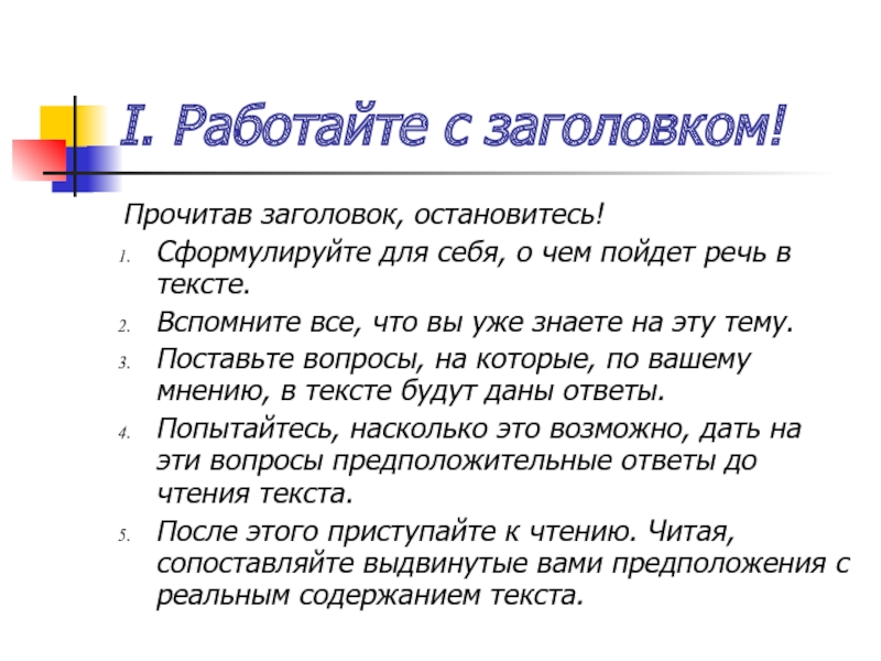 тексту и выдвигайте свои предположения о дальнейшем его содержании.