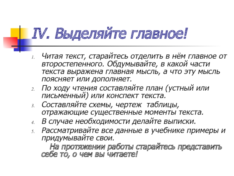 Читая текст, старайтесь отделить в нём главное от второстепенного.