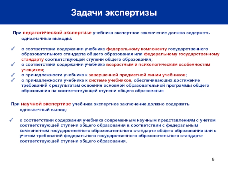 При научной экспертизе учебника экспертное заключение должно содержать однозначный вывод: