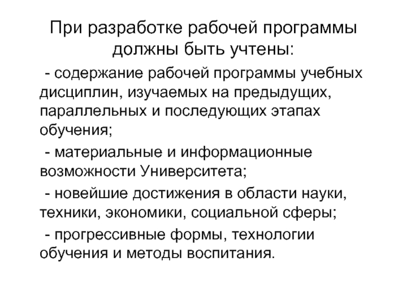 Слайд 15При разработке рабочей программы должны быть учтены: