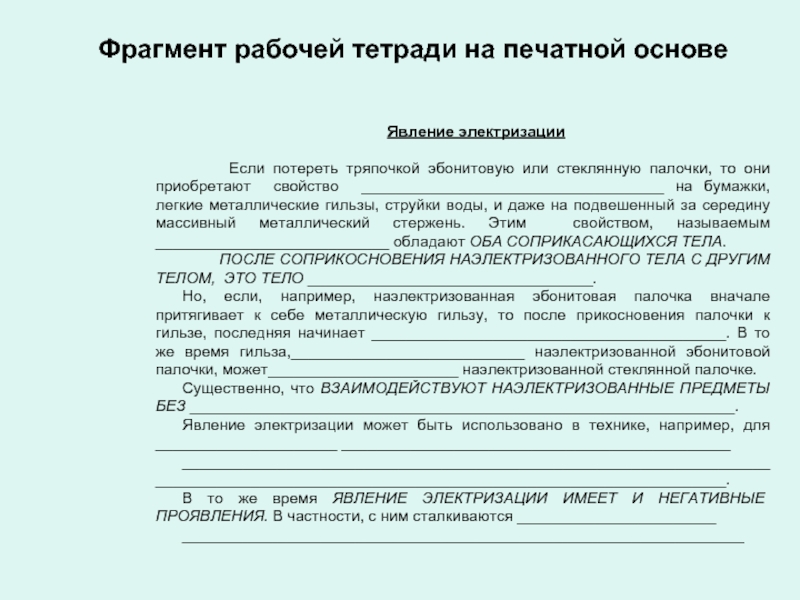 Фрагмент рабочей тетради на печатной основе